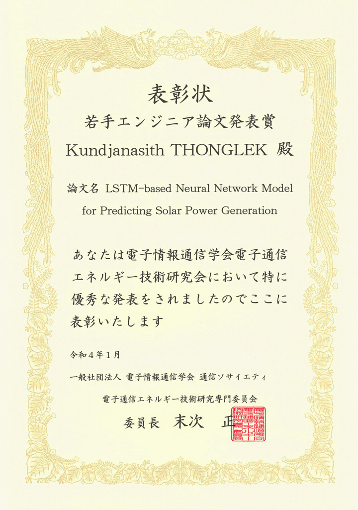 Thonglekさんが 若手エンジニア論文発表賞を受賞しました